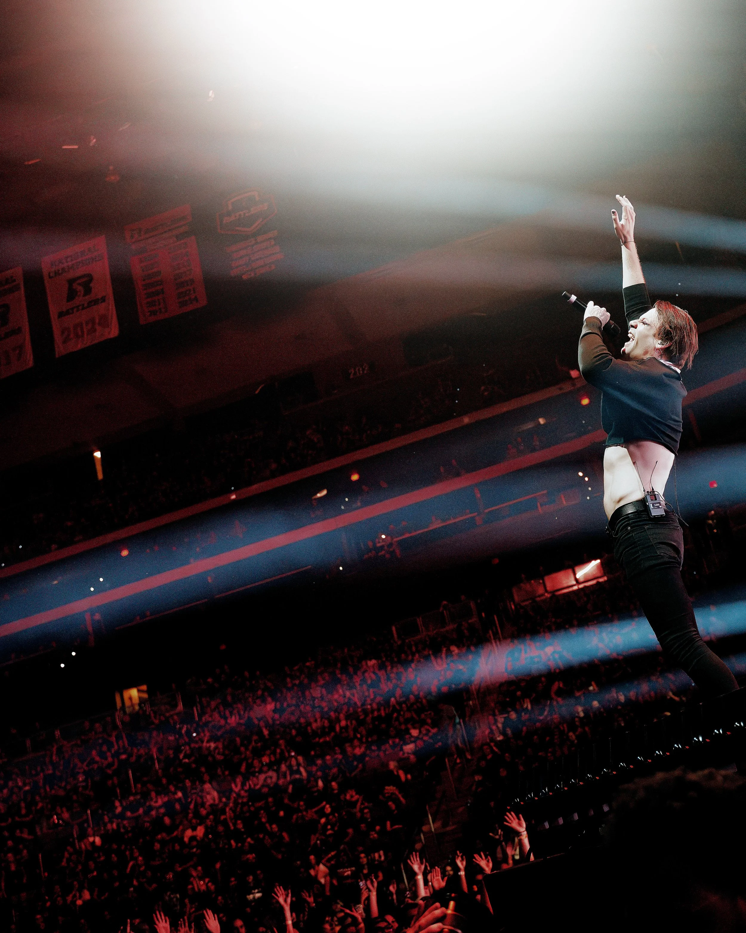 Beartooth’s music has seemed to have always thrived in ferocity and a sense of vulnerability. That's where the connection is found. Their sound is jagged around the edges. There are heavy guitars, thunderous drums. Paired with choruses built to be shouted at the top of your lungs. Beneath all of that is this pulse of simply being human. “In Between” and “Doubt Me” carried that emotional weight. The arena could feel the song's tenderness where frustration, self-reflection, and release all coexisted. At the center of it all was Caleb Shomo.