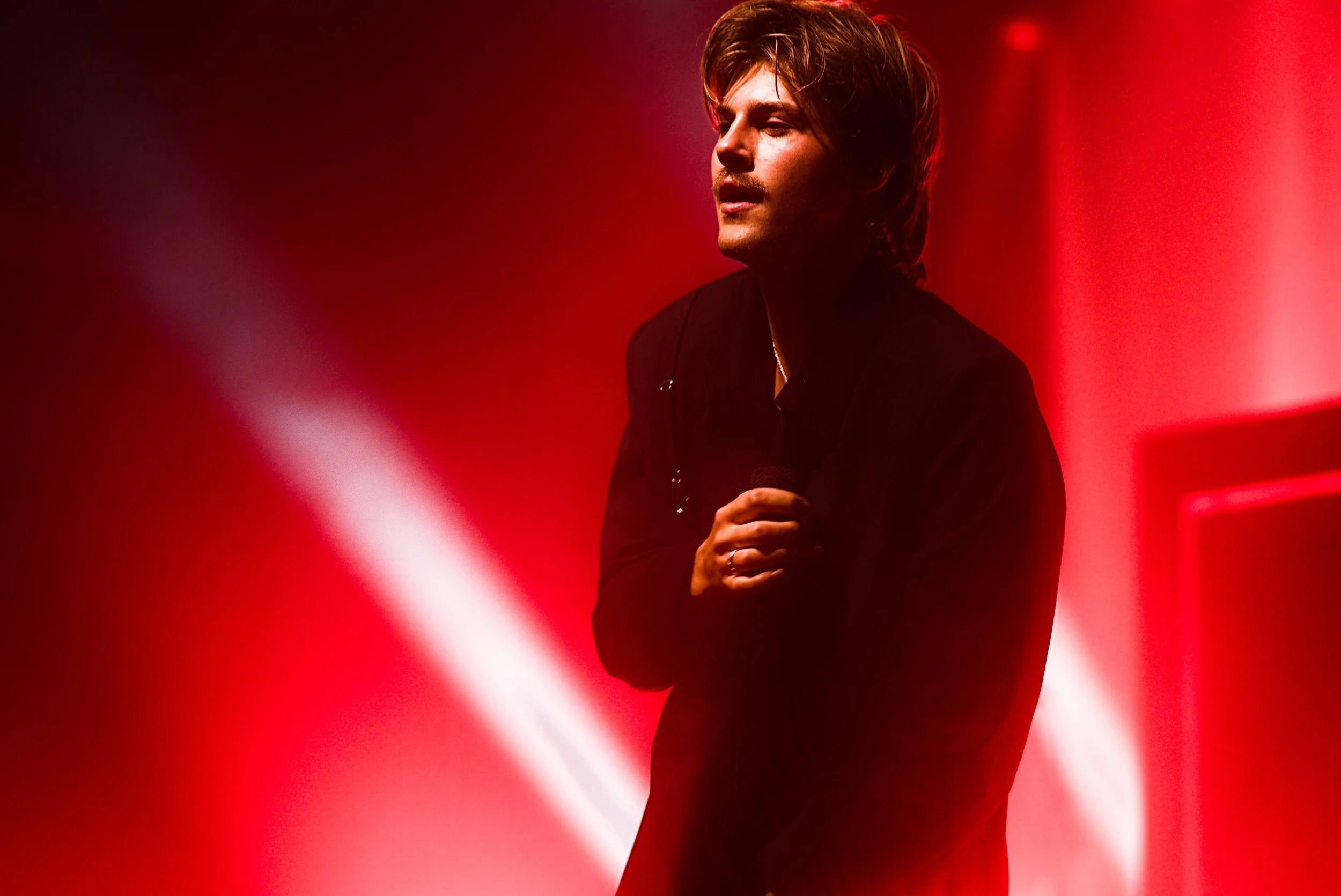 The red door began to flicker mist leaking from it like if something big was about to breach. As the door opened and light poured from out of it the silhouette of Ruel could be seen and for a split second silence overtook everyone until the venue erupted in cheering and “Only Ever” took over. The smoothness of “Only Ever” was personified as Ruel began to dance and glide to every part of the stage. He wanted to feel the crowd and the crowd gave it their all! The darkness of his suit a black blazer and black leather pants paired with the darkest chunky boots contrasted against the lights from his stage, it was clear that the 6’6” London born singer was in control and that he was making the stage his!